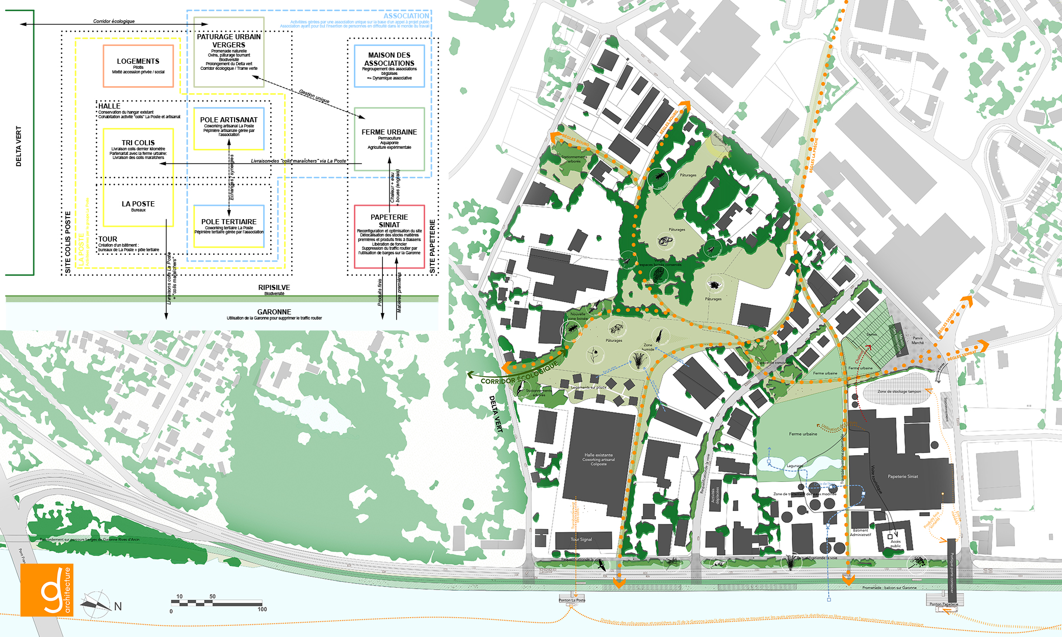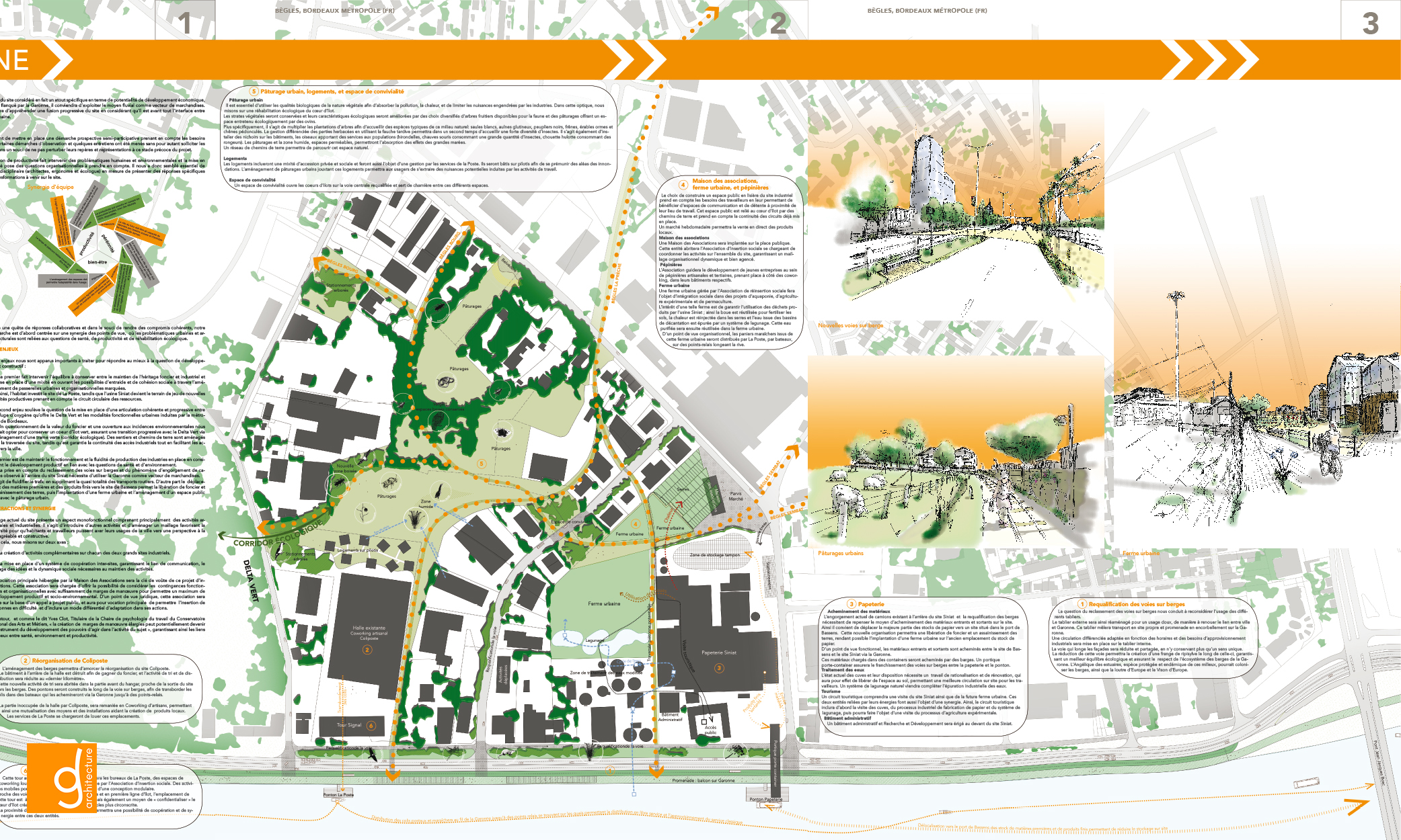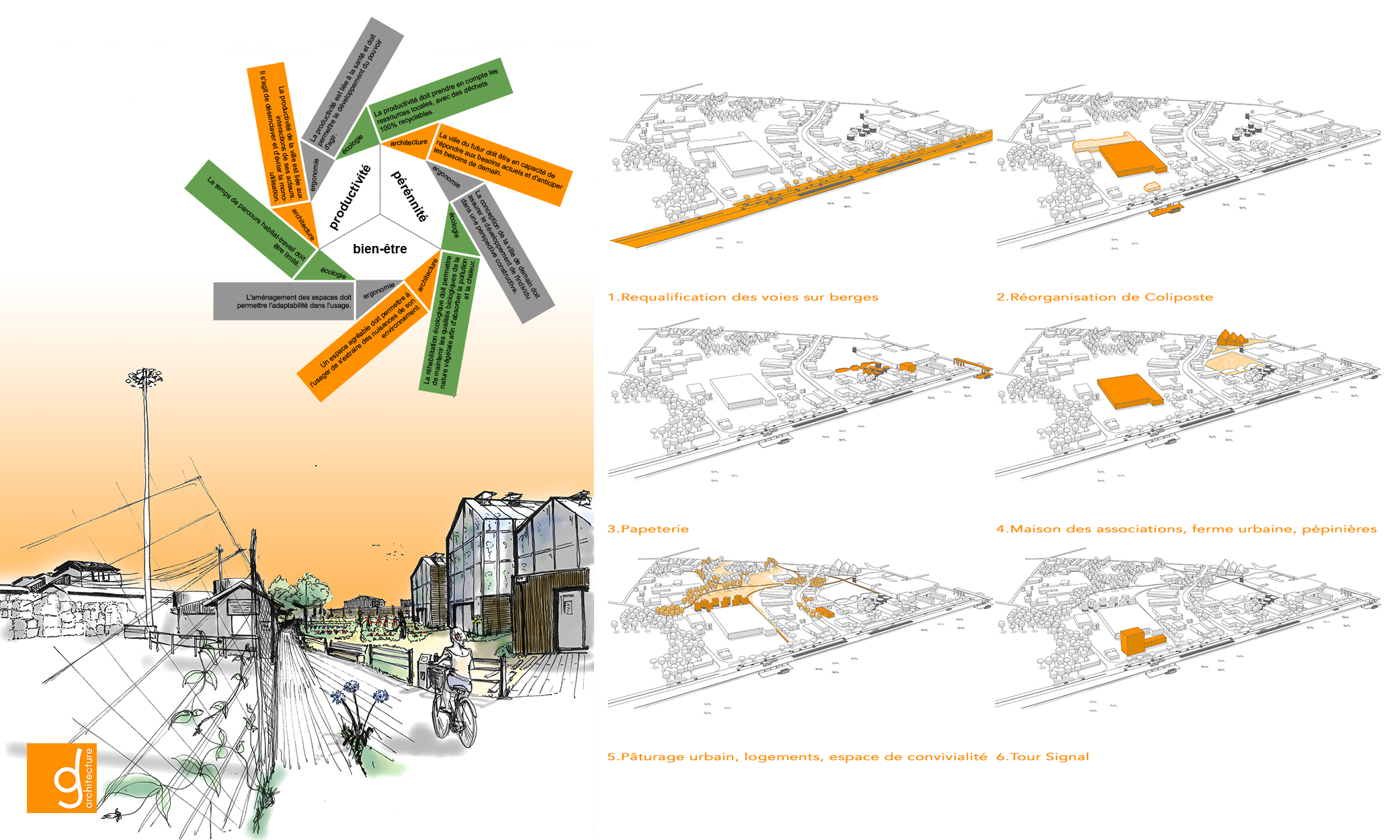 Les associés partagent une vision de l'acte de construire respectueuse des enjeux environnementaux et économiques contemporains. Cet aspect primordial de leur pratique architecturale est développé dans le chapitre « Développement Durable ».
