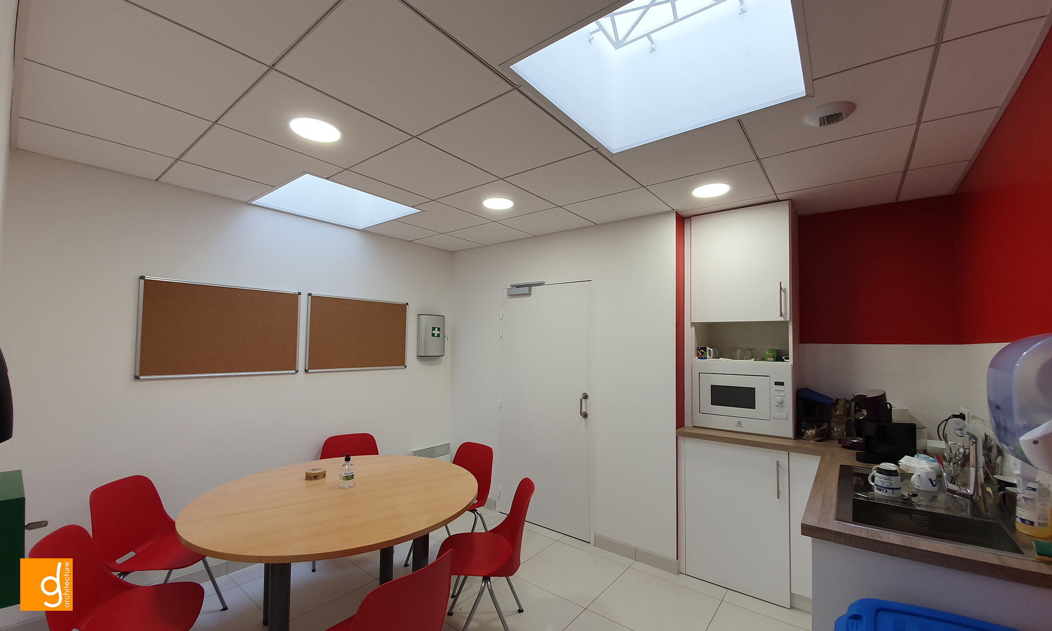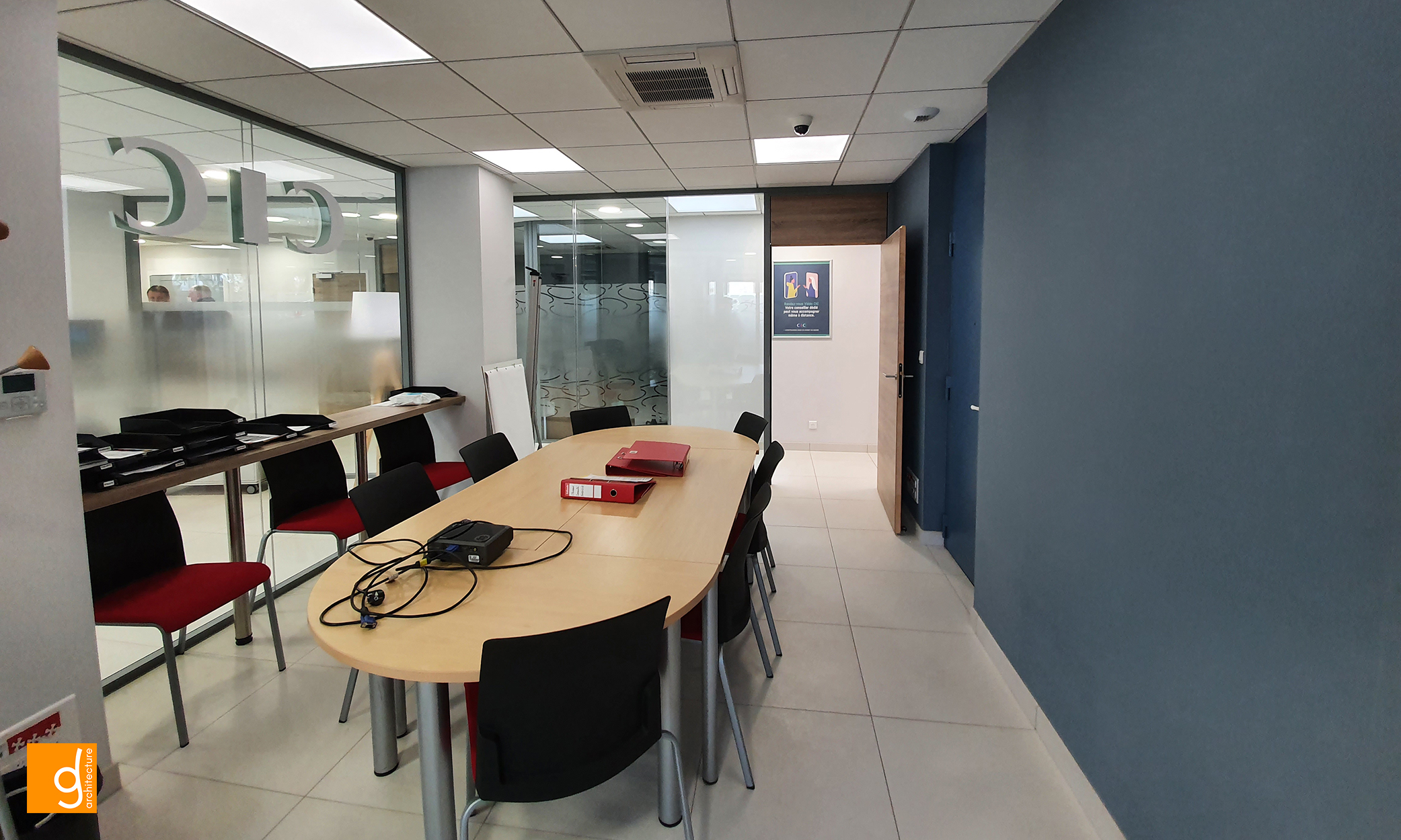 Elle a à sa disposition une salle de réunion partagée.